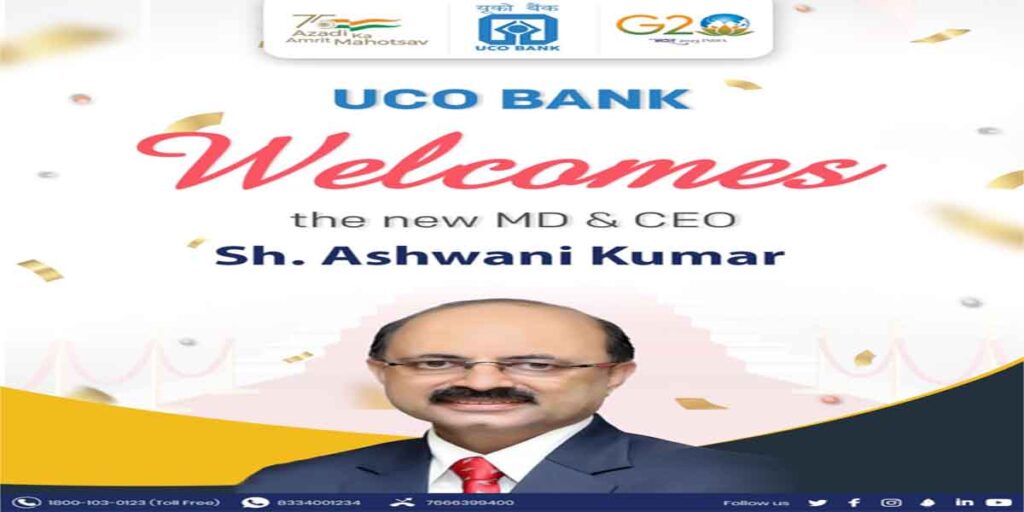 UCO Bank:- अश्विनी कुमार सार्वजनिक क्षेत्र के यूको बैंक के नए प्रबंध निदेशक (एमडी) और मुख्य कार्यपालक अधिकारी (सीईओ) बन गए हैं। उनका कार्यकाल एक जून से प्रभावी हो गया है।