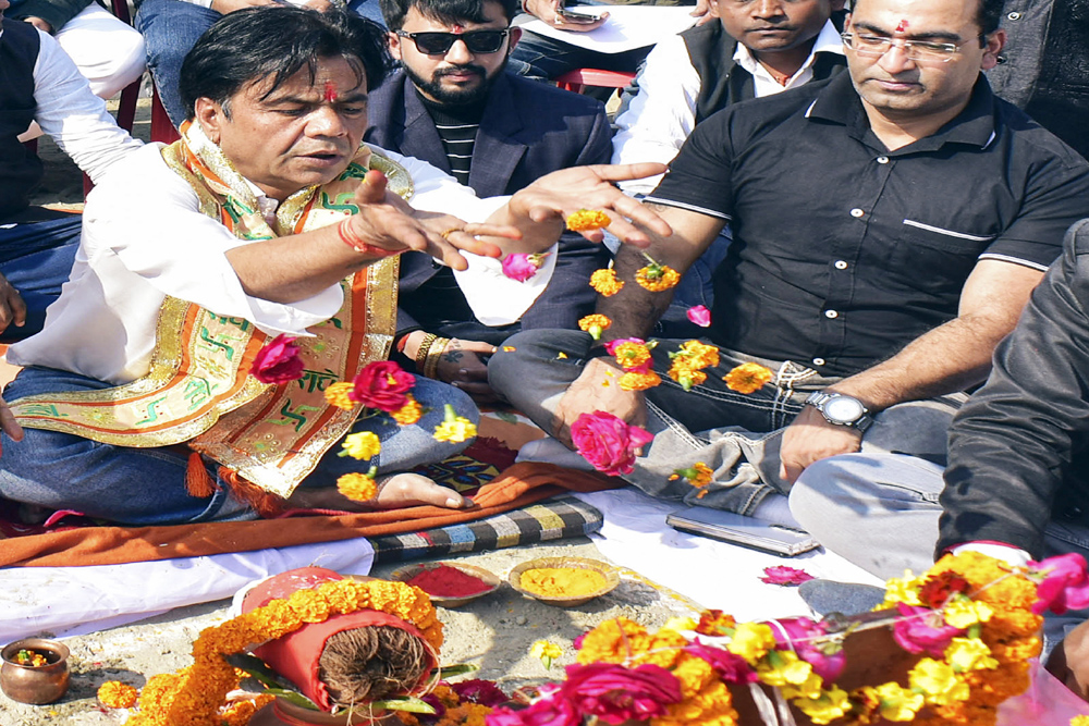 बॉलीवुड एक्टर राजपाल यादव ने त्रिवेणी संगम में किया स्नान-ध्यान