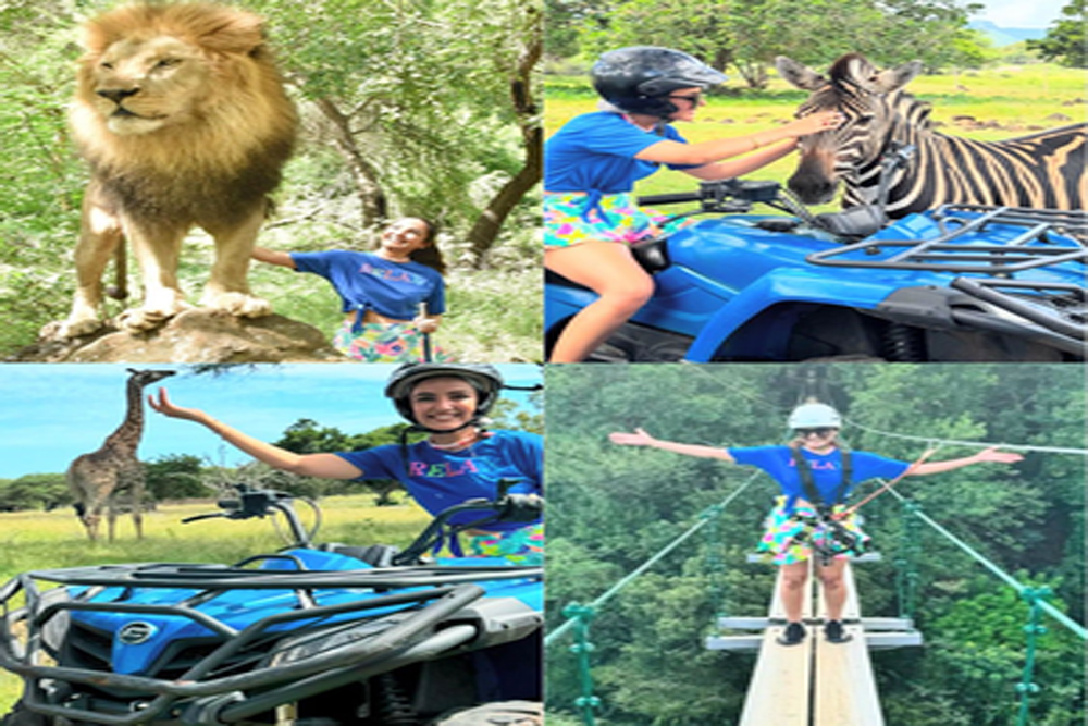 मुंबई। एक्ट्रेस जैस्मीन भसीन (Jasmine Bhasin) इस दिनों मॉरीशस में छुट्टियां मना रही हैं। उन्होंने मंगलवार को इंस्टाग्राम स्टोरी पर कैसला वाइल्डलाइफ पार्क (Kaisala Wildlife Park) और नेचर रिजर्व की अपनी रोमांचक तस्वीरें शेयर की। ‘बिग बॉस 14’ फेम मॉरीशस में अपने बॉयफ्रेंड अली गोनी (Ali Goni) के साथ हैं। वाइल्ड लाइफ के बीच पोज देते हुए जैस्मीन ने तस्वीरों की एक सीरीज पोस्ट की। तस्वीरों में एक्ट्रेस ब्लू टीशर्ट के साथ फ्लोरल मिनी स्कर्ट में नजर आ रही हैं। वह शेर, जिराफ, जेबरा और मोर के साथ पोज देती दिख रही हैं। इसके अलावा, वह जिपलाइनिंग को भी एन्जॉय कर रही हैं। जियोटैग लोकेशन में एक्ट्रेस ने कैसला वाइल्डलाइफ पार्क और नेचर रिजर्व (Nature Reserve) को टैग किया। Jasmine Bhasin