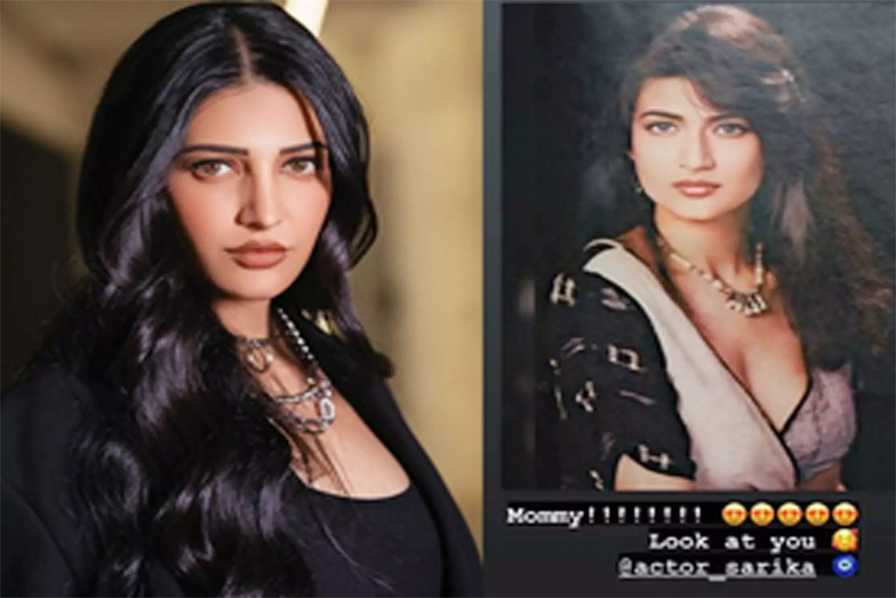 मुंबई। एक्ट्रेस श्रुति हासन (Shruti Haasan) ने अपनी मां सारिका (Sarika) की एक पुरानी तस्वीर सोशल मीडिया पर शेयर की है। श्रुति ने अपनी इंस्टाग्राम स्टोरी पर अपनी मां की एक तस्वीर शेयर की जो उनके जवानी के दिनों की है। तस्वीर में, सारिका ने मोनोक्रोम-शेड पहना हुआ है, वह कैमरे की ओर देख रही हैं। एक्ट्रेस ने तस्वीर को शेयर करते हुए कैप्शन में लिखा, “मां!!! लुक एट यू” इसके साथ उन्होंने प्यार भरा इमोजी भी शेयर किया। Shruti Haasan