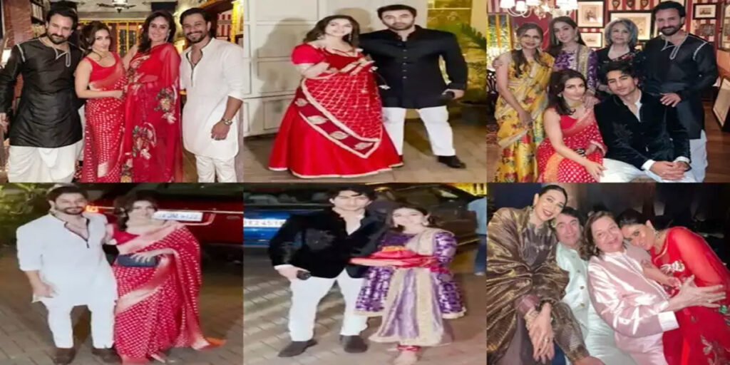 Kareena Kapoor Khan :- सैफ अली खान और उनकी पत्नी करीना कपूर खान ने अपने घर पर परिवार और करीबी दोस्तों के लिए एक शानदार दिवाली पार्टी दी। इसमें शर्मिला टैगोर, रणधीर कपूर, बबीता कपूर, आलिया भट्ट, रणबीर कपूर, सारा अली खान सहित कई हस्तियों ने शिरकत की। करीना फूलों की कढ़ाई वाली लाल साड़ी में खूबसूरत लग रही थीं, जबकि सैफ ब्लैक एथनिक ड्रेस में शाही अंदाज में दिख रहे थे। वीडियो में मशहूर अभिनेत्री शर्मिला टैगोर को ब्लैक कलर की साड़ी में देखा गया, वो बेहद खूबसूरत लग रही थीं। करीना के पिता और अभिनेता रणधीर कपूर को हल्के हरे रंग का कुर्ता पहने देखा गया, जबकि बबीता ने गुलाबी पोशाक पहनी थी।