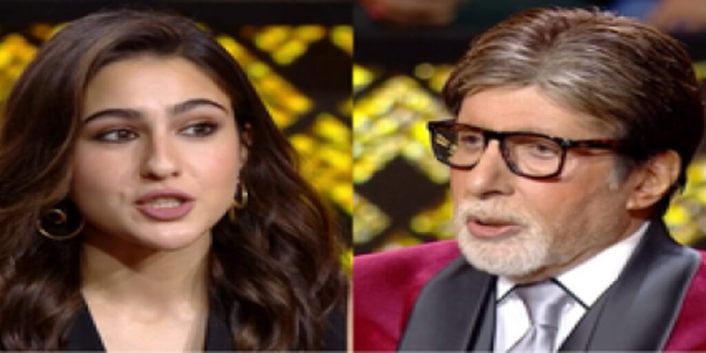 Sara Ali Khan :- बॉलीवुड दिवा सारा अली खान सोशल मीडिया पर अपने ‘नॉक नॉक’ जोक्स के लिए मशहूर हैं। उन्होंने शो ‘कौन बनेगा करोड़पति 15’ के सेट पर मेगास्टार अमिताभ बच्चन के साथ हंसी-मजाक किया। ‘केदारनाथ’ फेम एक्ट्रेस अपनी दादी और प्रसिद्ध अभिनेत्री शर्मिला टैगोर के साथ क्विज-बेस्ड रियलिटी शो के फिनाले एपिसोड में दिखाई दीं। अमिताभ ने हॉट सीट पर दोनों का स्वागत किया, सारा ने कहा: “अमित सर, नॉक नॉक।” सिने आइकन असमंजस में पड़ गए और उन्होंने पूछा कि “नॉक नॉक” क्या है। सारा ने उन्हें जवाब देते हुए कहा कि उन्हें पूछना होगा कि “वहां कौन है?” ‘ब्रह्मास्त्र’ फेम अभिनेता ने सिर हिलाया और कहा: “हां, वहां कौन है? सारा ने “देखो” कहकर मजाक शुरू किया, जिस पर अमिताभ ने कहा: “देखो कौन? ‘सिम्बा’ एक्ट्रेस ने हंसते हुए कहा, “हमें 1 करोड़ रुपये जीतते हुए देखिए। इसके बाद ‘शोले’ अभिनेता ने सारा से पूछा: “क्या आपको लगता है कि केवल आप ही पॉपुलर हैं? मैं नॉक नॉक भी जानता हूं।