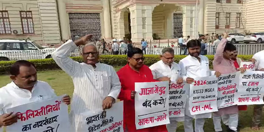 Bihar Legislature :- बिहार विधानमंडल के शीतकालीन सत्र की सोमवार को शुरुआत हुई। सत्र के पहले ही दिन विपक्ष के साथ सत्ता पक्ष में शामिल भाकपा (माले) के सदस्यों का हंगामा देखने को मिला। सत्र के शुरू होने के पहले ही विधानसभा परिसर में भाजपा के सदस्यों ने प्रदेश में कानून व्यवस्था की खराब स्थिति को लेकर प्रदर्शन किया। इस बीच, भाकपा माले के विधायकों ने इजराइल द्वारा फिलिस्तान पर किए जा रहे हमले के विरोध में नारेबाजी की। वामदल के विधायको ने हाथ में तख्तियां लेकर प्रदर्शन किया। तख्तियों पर गाजा में युद्ध बंद करो, फिलिस्तीन के समर्थन में उठ रही आवाज को दबाना बंद करो, गाजा फिलिस्तीन पर हमले बंद करो, जैसे नारे लिखे दिखे।