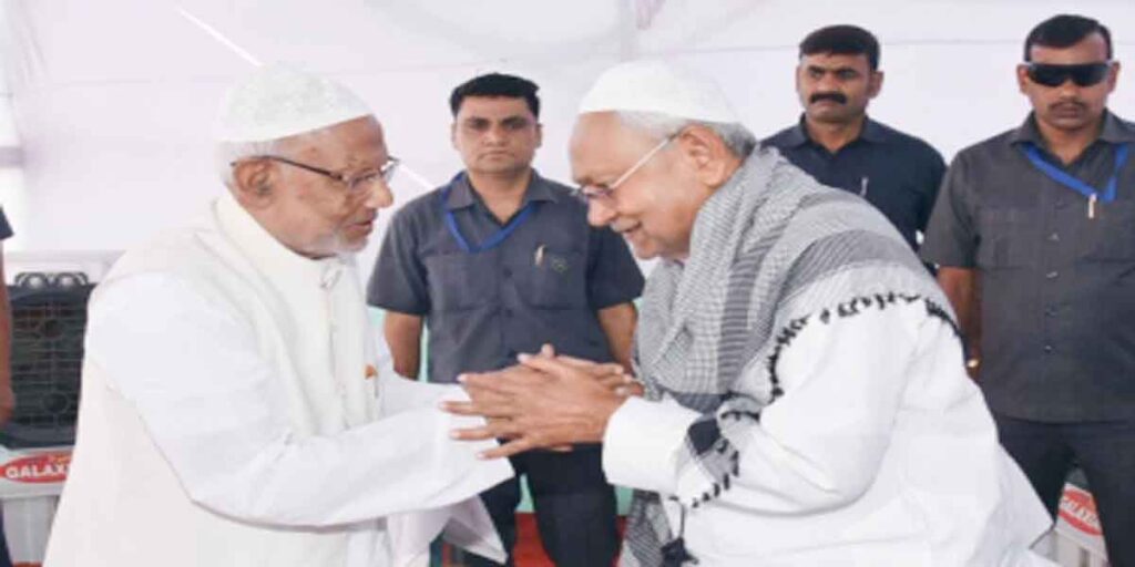 पटना। बिहार (Bihar) में शनिवार को ईद उल फितर (Eid Ul Fitr) का त्योहार धूमधाम से मनाया जा रहा है। ईद के मौके पर पटना के गांधी मैदान (Gandhi Maidan) में बड़ी संख्या में लोग पहुंचे और नमाज अद की तथा एक दूसरे को ईद की मुबारकबाद दी। बिहार के मुख्यमंत्री नीतीश कुमार (Nitish Kumar) भी गांधी मैदान पहुंचे और लोगों को ईद की मुबारकबाद दी। इस मौके पर बच्चो में भी खासा उत्साह देखा गया, जो एक दूसरे से गले मिलकर ईद की मुबारकबाद दी। मुख्यमंत्री नीतीश कुमार (Nitish Kumar) ने पत्रकारों से चर्चा करते हुए कहा कि हम यहां 2006 से यहां आ रहे हैं। यहां ईद बहुत अच्छे से आयोजित होती है। हम सबको बधाई देते हैं।