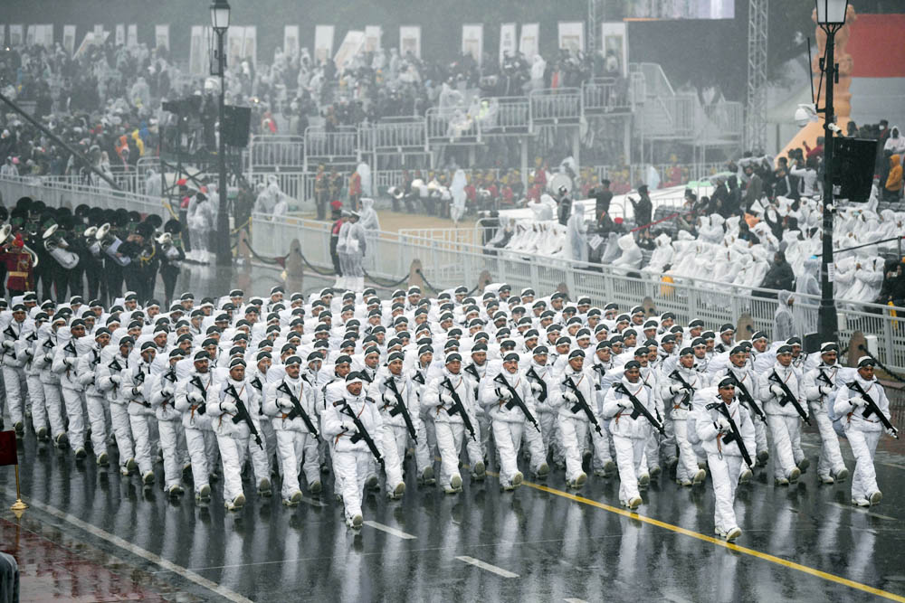 गणतंत्र दिवस समारोह की फुल ड्रेस रिहर्सल, बरसात में भी दिखा जवानों का जोश