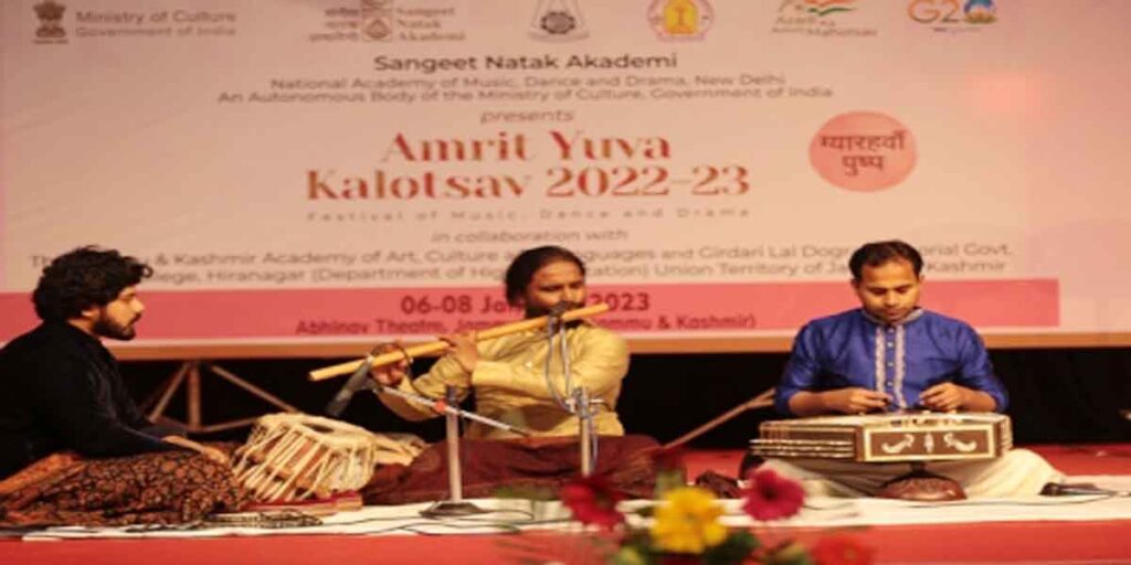 जम्मू। संगीत नाटक अकादमी अकादमी, जम्मू-कश्मीर (Jammu-Kashmir) कला, संस्कृति एवं भाषा अकादमी, गढ़धारी लाल डोगरा मेमोरियल डिग्री कॉलेज, हीरानगर (Garhdhari Lal Dogra Memorial Degree College, Hiranagar) के सहयोग से जम्मू में तीन दिवसीय अमृत युवा कलोत्सव (Amrit Yuva Kalotsav) का आयोजन कर रही है। इसमें जम्मू-कश्मीर और लद्दाख सहित देश के विभिन्न हिस्सों के कलाकार भाग ले रहे हैं। समारोह के दूसरे दिन शनिवार को लद्दाख, कश्मीर और दिल्ली के कलाकारों ने अपनी प्रस्तुति से दर्शकों का मन मोह लिया। अमृत युवा कलोत्सव संगीत नाटक अकादमी (Amrit Yuva Kalotsav Sangeet Natak Akademi) की प्रदर्शन कला में युवाओं की रुचि को पुनर्जीवित करने की अनूठी पहल है। भारत की आजादी के 75 साल पूरे होने के उपलक्ष्य में देशभर के विभिन्न स्थानों पर कुल 75 दिनों तक प्रस्तुतियां होंगी।
