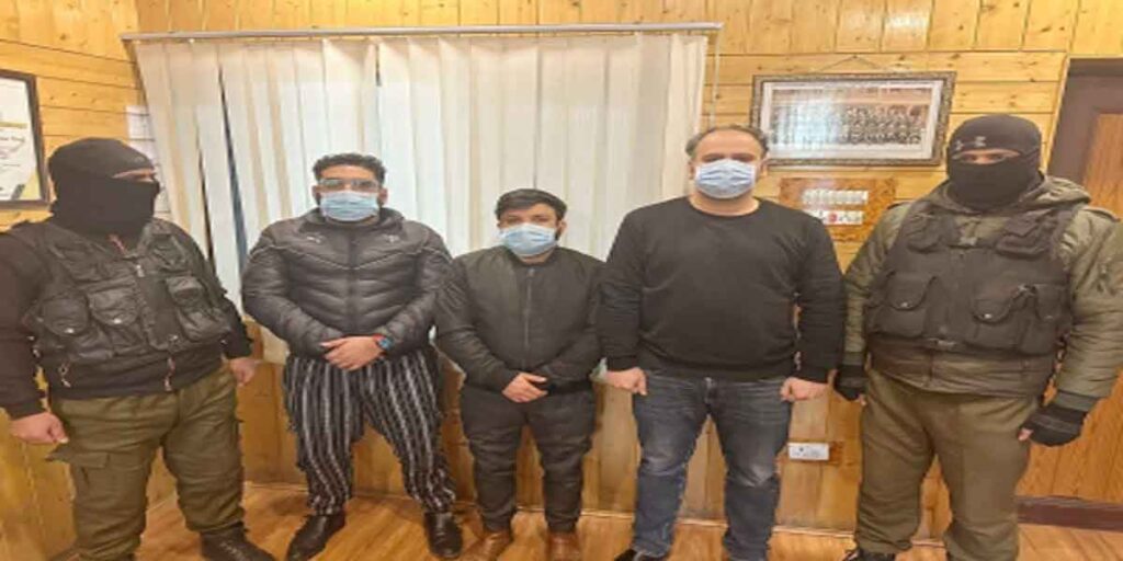 श्रीनगर। जम्मू-कश्मीर पुलिस (Jammu-Kashmir Police) ने तीन स्वयंभू नेताओं को गिरफ्तार किया है। पुलिस का दावा है कि उन्होंने मीडियाकर्मियों को धमकाया था और देश विरोधी बयान (Anti National Statement) दिए थे। पुलिस ने गुरुवार को यह जानकारी दी। तीनों ने बुधवार को मीडियाकर्मियों को धमकाया था।
