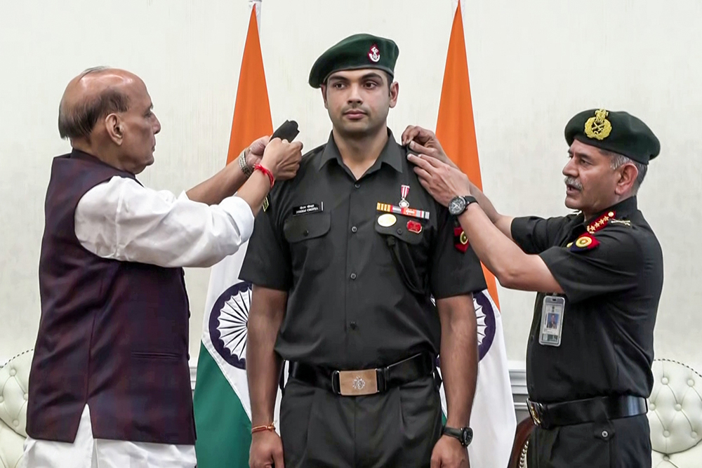 रक्षा मंत्री ने नीरज चोपड़ा की उपलब्धियों की सराहना करते हुए कहा कि नीरज ने मैदान में जो अनुशासन और निष्ठा दिखाई, वही भावना उन्हें सेना के आदर्शों से जोड़ती है। वह आने वाली पीढ़ियों के लिए सच्चे प्रेरणास्रोत हैं।