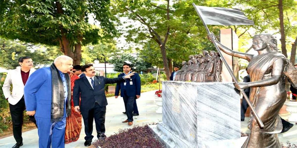 श्री धनखड़ ने सुबह संविधान उद्यान (Constitution Garden) में निर्मित संविधान के कला-रूपों का बारीकी से अवलोकन किया। संविधान उद्यान भ्रमण के बाद उन्होंने राज्यपाल कलराज मिश्र से विशेष रूप से संवाद कर संविधान के मूर्तरूप की इस पहल के लिए उन्हें विशेष रूप से बधाई दी और कहा कि आजादी के बाद इस तरह की यह अनूठी पहल राजस्थान में उनके प्रयासों से ही संभव हो पाई है। उन्होंने राजभवन में चरखा कातते महात्मा गांधी की उस प्रतिमा की भी सराहना की जिसने स्वदेशी के जरिए आजादी आंदोलन को गति प्रदान करने में महती भूमिका निभाई। उन्होंने इस प्रतिमा, मयूर स्तम्भ और महाराणा प्रताप की अपने प्रिय घोड़े चेतक के साथ ‘विश्रांति‘ मुद्रा में निर्मित प्रतिमा के समक्ष फोटो भी खिंचवाया।