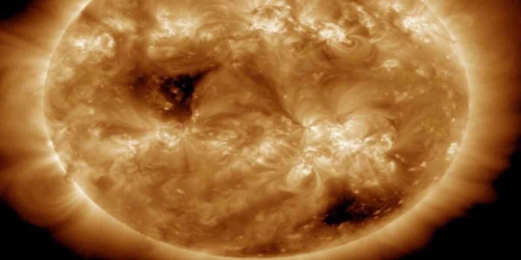 लंदन। एक विशाल ‘छेद’, जो पृथ्वी (Earth) से 20 गुना बड़ा है, सूर्य (Sun) की सतह पर दिखाई दिया है और शुक्रवार तक पृथ्वी पर एक सौर तूफान (Storm) ला सकता है। मीडिया रिपोर्ट्स में यह जानकारी दी गई है। बिजनेस इनसाइडर (Business Insider) ने बताया कि यूनिवर्सिटी कॉलेज लंदन (University College London) में अंतरिक्ष और जलवायु भौतिकी के एसोसिएट प्रोफेसर डेनियल वॉरेन (Daniel Warren) ने कहा कि भू-चुंबकीय तूफान लगभग 1.8 मिलियन मील प्रति घंटे की गति से पृथ्वी तक पहुंच सकता है। यूएस नेशनल ओशनिक एंड एटमॉस्फेरिक एडमिनिस्ट्रेशन (NOAA) के अनुसार, एक शक्तिशाली भू-चुंबकीय तूफान पृथ्वी के चुंबकीय क्षेत्र में गंभीर गड़बड़ी का कारण बनता है, कोरोनल मास इजेक्शन (CME) से सौर मटेरियल को उगलता है, जो सूर्य के ऊपरी वायुमंडल या कोरोना से आवेशित प्लाज्मा के बड़े निष्कासन और आश्चर्यजनक ओरोरा भी प्रकट करते हैं जब वे पृथ्वी पर पहुँचते हैं।