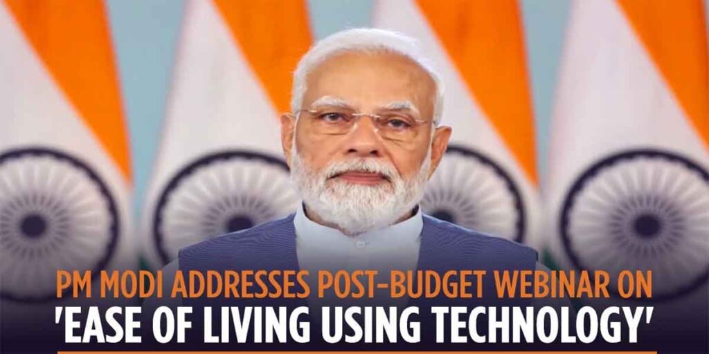 बजट 2023-24 के विभिन्न पहलुओं पर बजट- उपरांत वेबिनार (Post Budget Webinar) की श्रृंखला में आज की कड़ी को संबोधित करते हुए श्री मोदी ने कहा कि विगत वर्षों में उनकी सरकार के हर बजट में प्रौद्योगिकी की मदद से देशवासियों के जीवन को आसान बढ़ाने की दिशा में प्रगति पर जोर दिया गया है।