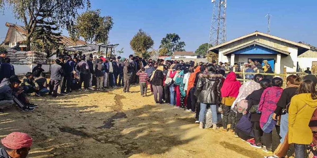 कोहिमा। नागालैंड विधानसभा चुनाव (Nagaland assembly elections) में सोमवार को सुबह 11 बजे तक 38.68 प्रतिशत से अधिक मतदान (Voting) दर्ज किया गया। कड़ी सुरक्षा के बीच 60 विधानसभा क्षेत्रों में से 59 पर मतदान जारी हैं। अपने-अपने मताधिकार को प्रयोग करने लोग बड़ी संख्या में मतदान केंद्रों में पहुंचे।