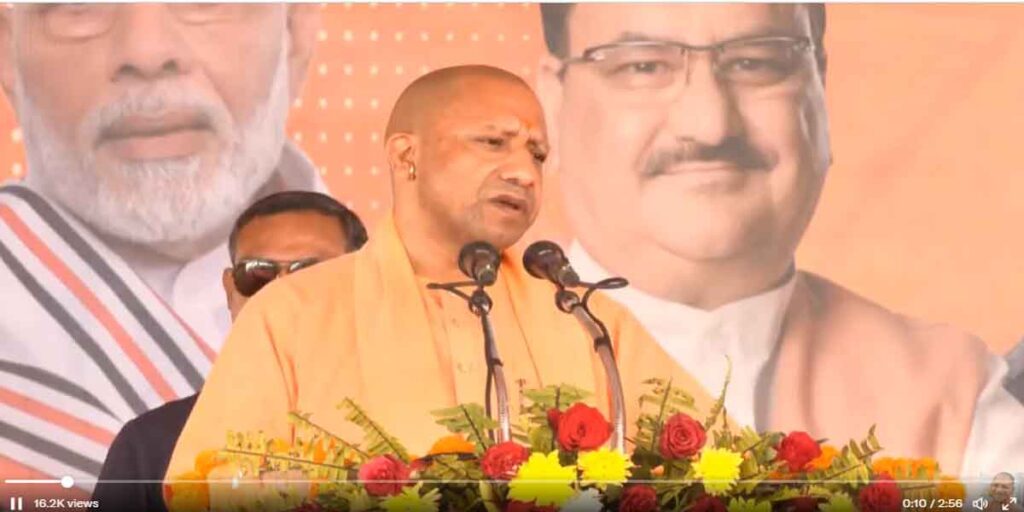 मुख्यमंत्री ने भाजपा प्रत्याशियों लिए चुनाव प्रचार करते हुए कहा कि आजमगढ़ बाबा भंवरनाथ की कृपा से पुष्पित पल्लवित और परम तपस्वी महर्षि दुवार्सा और श्री दत्तात्रेय जी की पावन धरा है। संतों, ऋषियों, क्रांतिकारों और साहित्यकारों ने इसे समय समय पर सींचा है। ऐसे आजमगढ़ की धरा को जिसने हरिहरपुर जैसे गांव को कला के लिए समर्पित किया है, उसे मैं कोटि-कोटि नमन करता हूं। स्वतंत्र भारत में बिना भेदभाव के विकास योजनाओं की जो आस थी, ये जनपद उससे विपरीत दिशा में चलता गया। कुछ लोगों ने युवाओं के हाथ में तमंचे देने का काम किया। 2017 से पहले आजमगढ़ पहचान के लिए मोहताज था। यहां के लोगों के दूसरे शहरों में होटल और धर्मशालाओं में कमरे तक नहीं मिलते थे। जिन लोगों ने ये संकट पैदा किया था आज उससे मुक्त करके आजमगढ़ को पूर्वांचल एक्सप्रेस से जोड़ा जा चुका है। यहां एयरपोर्ट बन रहा है और अब कट्टा नहीं कलम के लिए महाराज सुहेलदेव के नाम पर विश्व विद्यालय भी शुरू हो चुका है, शीघ्र ही उसका प्रशासनिक भवन बनने जा रहा है।