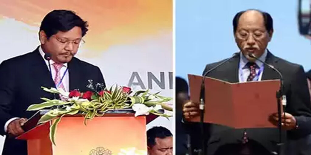कोनरेड संगमा ने सुबह 11 बजे शपथ लिया तो नेफ्यू रियो ने दोपहर एक बज कर 45 मिनट पर पांचवीं बार मुख्यमंत्री पद की शपथ ली। दोनों के शपथ ग्रहण समारोह में भाजपा अध्यक्ष जेपी नड्डा और असम के मुख्यमंत्री हिमंत बिस्वा सरमा भी मौजूद रहे। दोनों राज्यों में दो-दो उप मुख्यमंत्री बनाए गए हैं। मेघालय में संगमा की पार्टी के स्निआवभलंग धर और प्रिस्टोन तेनसोंग ने उप मुख्यमंत्री पद की शपथ ली है। नगालैंड में टीआर जेलियांग और यानथुंगो पैट्टन को उप मुख्यमंत्री बनाया गया है।