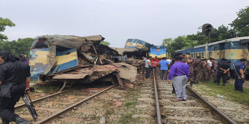 Train Accident :- बांग्लादेश में सोमवार को एक यात्री ट्रेन और एक मालगाड़ी के बीच टक्कर होने से कम से कम 15 लोगों की मौत हो गई और कई अन्य घायल हो गए। भैरब रेलवे थाने के ड्यूटी अधिकारी सिराजुल इस्लाम ने मीडिया को बताया कि दुर्घटना तब हुई जब चटोग्राम की ओर जा रही मालगाड़ी किशोरगंज में स्थानीय समयानुसार अपराह्न करीब 3.30 बजे ढाका आ रही एगारो सिंदुर एक्सप्रेस से टकरा गई।