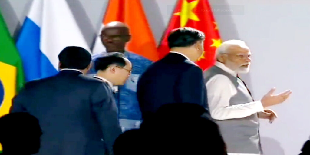 BRICS Summit :- प्रधानमंत्री नरेंद्र मोदी और चीनी राष्ट्रपति शी जिनपिंग के बीच गुरुवार को जोहान्सबर्ग में ब्रिक्स शिखर सम्मेलन से इतर छोटी सी वार्ता हुई। सम्मेलन के एक वीडियो फुटेज के अनुसार, दोनों नेताओं को अपनी निर्धारित सीटों की ओर बढ़ते हुए बातचीत करते देखा जा सकता है। पिछले साल जी20 बाली शिखर सम्मेलन के दौरान भी मोदी और शी दोनों ने एक-दूसरे से मुलाकात की थी।