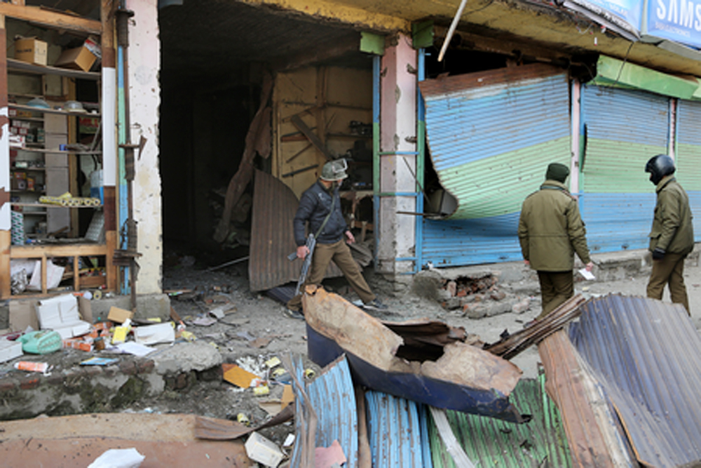 जम्मू-कश्मीर के डीजीपी नलिन प्रभात, आईजीपी और पुलिस के आला अधिकारी नौगाम पुलिस थाने में हुए आकस्मिक विस्फोट के बाद जमीनी हालात का जायजा लेने के लिए मौके पर पहुंचे।