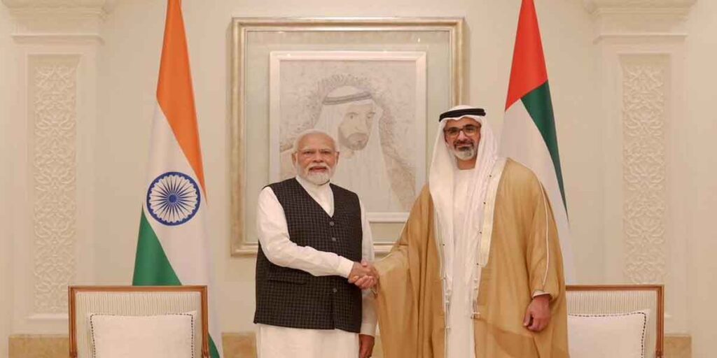 PM Modi UAE Visit:- प्रधानमंत्री नरेन्द्र मोदी संयुक्त अरब अमीरात (यूएई) की एक दिवसीय यात्रा पर शनिवार को अबू धाबी पहुंचे। इस दौरान वह अरब देश के राष्ट्रपति शेख मोहम्मद बिन जायद अल नाह्यान से मुलाकात करेंगे और दोनों सामरिक साझेदारों के बीच मजबूत हो रहे द्विपक्षीय संबंधों का जायजा लेंगे।