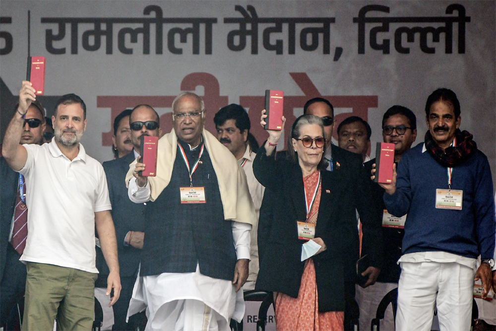 राहुल गांधी ने कहा, ‘पीएम मोदी का कॉन्फिडेंस खत्म हो गया है। अमित शाह के हाथ कांपते हैं। वो जानते हैं कि उनकी चोरी पकड़ी गई है’। कांग्रेस अध्यक्ष मल्लिकार्जुन खड़गे ने कहा, ‘इन लोगों ने ने हमारा वंदे मातरम् भी चोरी किया है। ये लोग नेहरू-पटेल के बीच दरार पैदा करते हैं। गांधी-नेहरू-अंबेडकर पर हमला बोलते हैं। इन गद्दारों को आपको हटाना होगा’। पार्टी महासचिव प्रियंका गांधी वाड्रा ने कहा, ‘आज न्यायालय पर दबाव है। सारी मीडिया अंबानी-अडानी की है। कांग्रेस के नेताओं को तरह-तरह के आरोप लगाकर जेल में बंद किया गया। जो उनकी पार्टी में शामिल हो गए, उसे उनकी वॉशिंग मशीन ने साफ कर दिया’।