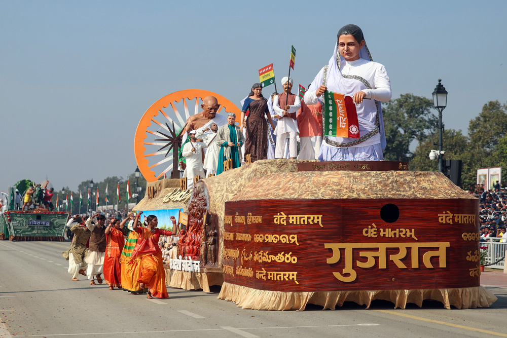 इस वर्ष कर्तव्य पथ पर आयोजित राष्ट्रीय परेड में गुजरात राज्य के सूचना विभाग द्वारा प्रस्तुत झांकी में ‘वंदे मातरम’ और स्वदेशी आंदोलन के समन्वय से उत्पन्न स्वतंत्रता की क्रांति से लेकर प्रधानमंत्री नरेंद्र मोदी द्वारा दिए गए आत्मनिर्भरता हेतु स्वदेशी मंत्र की यात्रा को प्रभावशाली ढंग से प्रस्तुत किया गया।