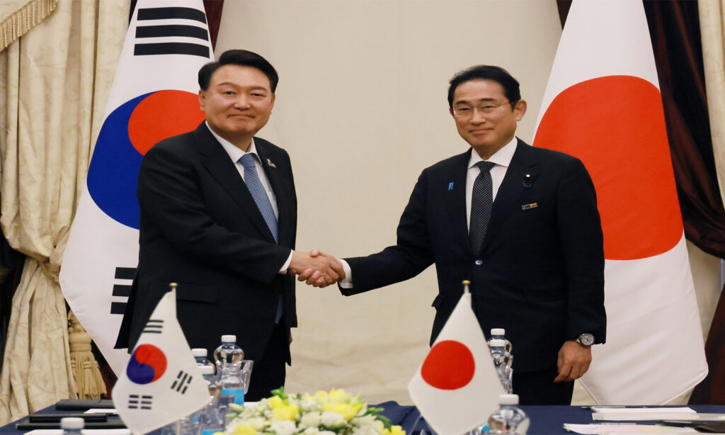 कभी जापान और दक्षिण कोरिया एक दूसरे के कट्टर दुश्मन थे। उनके रिश्तों में कड़वाहट के पीछे था अतीत। विशेषकर दक्षिण कोरिया पर जापान के औपनिवेशिक शासन के दौर से विरासत में मिली अनसुलझी समस्याएं। परंतु  अब नए और कहीं ज्यादा बड़े साझा दुश्मन से मुकाबला करने के लिए दोनों देशों ने अपनी पुरानी अदावत को भूलने का फैसला किया है। यह बड़ा साझा दुश्मन है चीन। और पुराने दुश्मनों को गले मिलवाया है अमरीका ने, क्योंकि उसके भी इस क्षेत्र में स्वार्थ हैं।