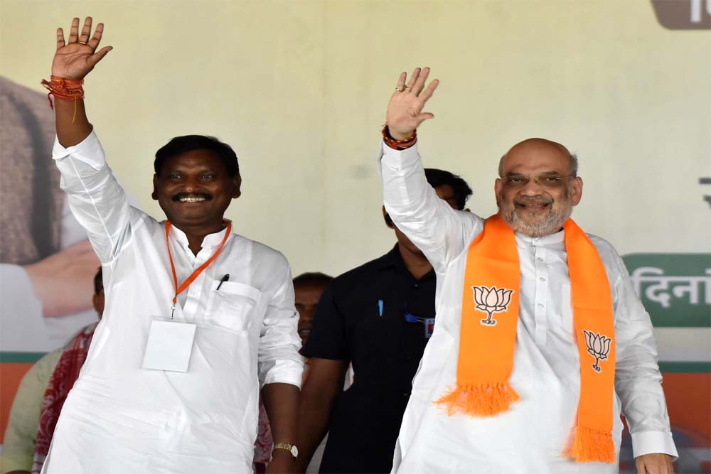 कई बार मुख्यमंत्री रहने और मोदी सरकार के जनजातीय मंत्री होने के कारण प्रदेश के आदिवासियों मेंअर्जुन मुंडा की शख्शियत बड़ी है। बावजूद इसके कस्बे और सीट के विधानसभा क्षेत्रों में मोदी लहर के कमजोर होने से कांटे का मुकाबला है। पूरा चुनाव वे अकेले अपने बूते लड़ते दिख रहे है। शनिवार को प्रचार के आखिरी दिन उनकी सभा तमाड में थी। स्टार प्रचारक थे असम के मुख्यमंत्री हिमंतविश्वा शर्मा। लेकिन अचानक तूफान और मूसलाधार बारिश के कारण रैली गडबडा गई। मेरे रैली स्थल से रवाना होने तक असम के मुख्यमंत्री वहां पहुंच नहीं सके थे। हालांकि अर्जुन मुंडा और उनके साथ आजसू के सुदेश महतो पहुंच गए थे। बारिश से तरबतर और पानी रिसते तंबू से बाहर खड़े भीगे लोगों को इकठ्ठा कर उन्होने भाषण दिया। उनका चेहरा, उनकी भाव-भंगिमा उनकी कड़ी मेहनत को दर्शाते हुए थी।