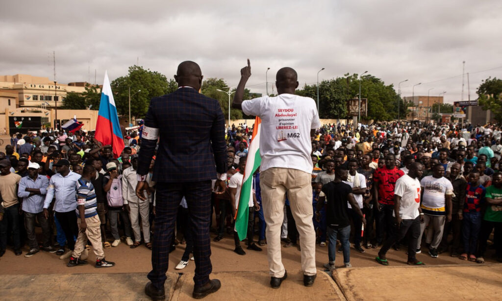 नाईजर में हुए तख्तापलट के बाद बीबीसी ने खबर दी कि वहां की सड़कों पर अचानक रूसी झंडे नजर आने लगे हैं। राजधानी निमये में हुए विरोध प्रदर्शनों के दौरान भी रूसी झंडे लहराए गए और फ्रांस के दूतावास पर हमला किया गया। फ्रांस, जो यहां का औपनिवेशिक शासक रहा है, ने वहां से अपने नागरिकों को निकालना शुरू कर दिया है। नाईजर में जेहादियों से लड़ने के लिए उसके 1,500 सैनिक मौजूद हैं और उसने नाईजर को दी जा रही सहायता स्थगित कर दी है। प्रदर्शनकारियों द्वारा निमये में फ्रांस के दूतावास को जलाने के प्रयास के बाद फ्रांस ने धमकी भरे स्वर में कहा कि ‘‘फ्रांस से हितों पर किसी भी प्रकार का हमला कतई बर्दाश्त नहीं किया जाएगा।” नाईजर में अमेरिका के 1,100 सैनिक और दो ड्रोन अड्डे हैं। नाईजर दुनिया में यूरेनियम, जो एटॉमिक एनर्जी के उत्पादन के लिए ज़रूरी कच्चा माल है, का सातवाँ सबसे बड़ा उत्पादक है और इसका एक चौथाई हिस्सा यूरोप को निर्यात होता है, विशेषकर नाइजर के पूर्व शासक फ्रांस को।