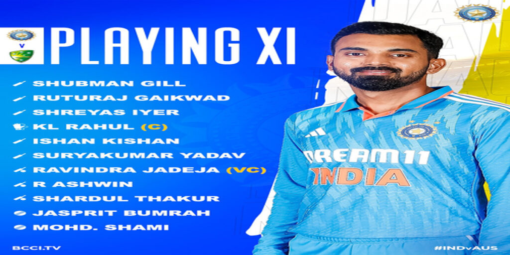 भारत: शुभमन गिल, रुतुराज गायकवाड़, श्रेयस अय्यर, केएल राहुल (कप्तान और विकेटकीपर), इशान किशन, सूर्यकुमार यादव, रवींद्र जड़ेजा, आर अश्विन, शार्दुल ठाकुर, जसप्रीत बुमराह और मोहम्मद शमी