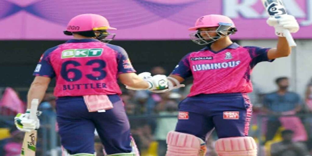 गुवाहाटी। यशस्वी जायसवाल (Yashasvi Jaiswal) (60) और जोस बरलर (79) के शानदार एवं तूफानी अर्धशतकों तथा शिमरॉन हेटमायर (Shimron Hetmyer) की नाबाद 39 रन की आतिशी पारी की बदौलत राजस्थान रॉयल्स ने दिल्ली कैपिटल्स (Delhi Capitals) के खिलाफ शानिवार को आईपीएल (IPL) मुकाबले में 20 ओवर में चार विकेट पर 199 रन का मजबूत स्कोर बना दिया। दिल्ली कैपिटल्स ने टॉस जीतकर पहले गेंदबाजी करने का फैसला किया। राजस्थान (Rajasthan) ने इस फैसले का फायदा उठाते हुए तूफानी शुरूआत की। जायसवाल ने खलील अहमद (Khalil Ahmed) के पहले ओवर में पांच चौके जड़ते हुए 20 रन ठोक डाले। जायसवाल ने 31 गेंदों में 11 चौकों और एक छक्के की मदद से 60 रन ठोके।